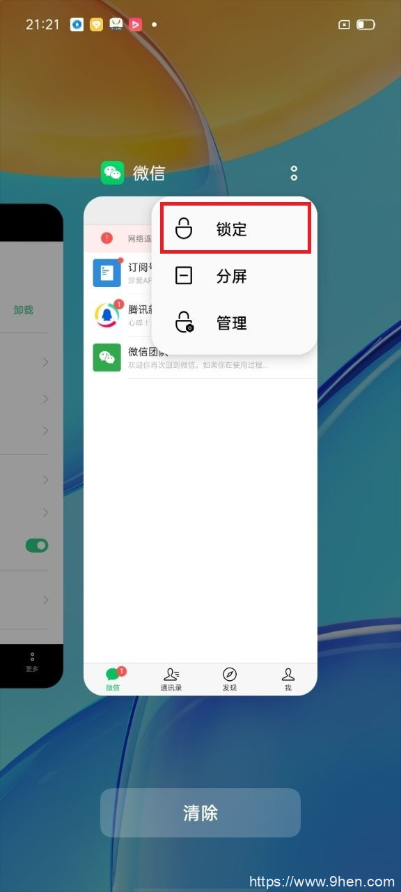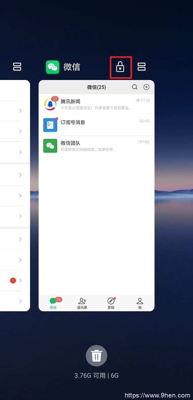 显示手机运行中的程序,将程序锁定在后台,不清理即可。